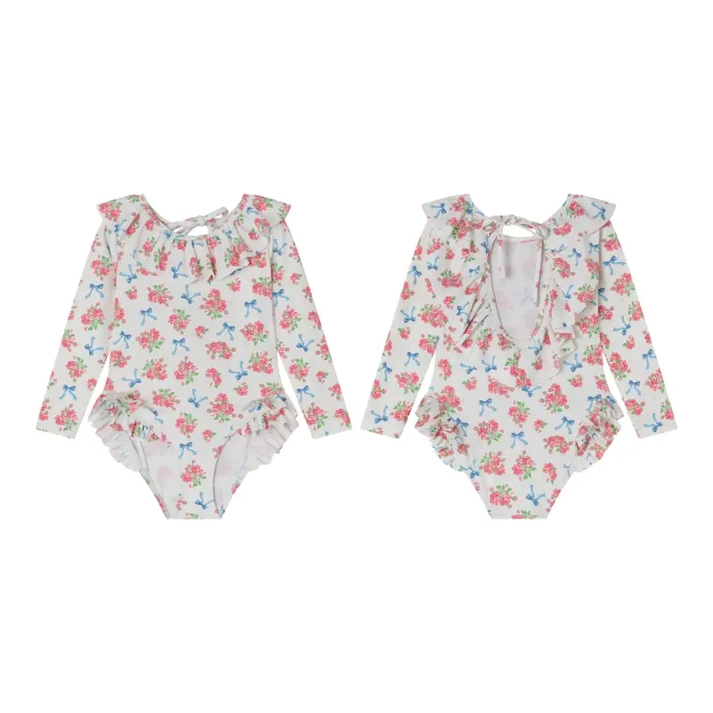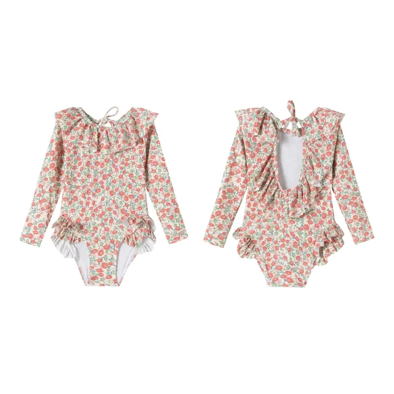 Custom Kids Girl Floral Patterned One Piece Sun Protection Swimsuit