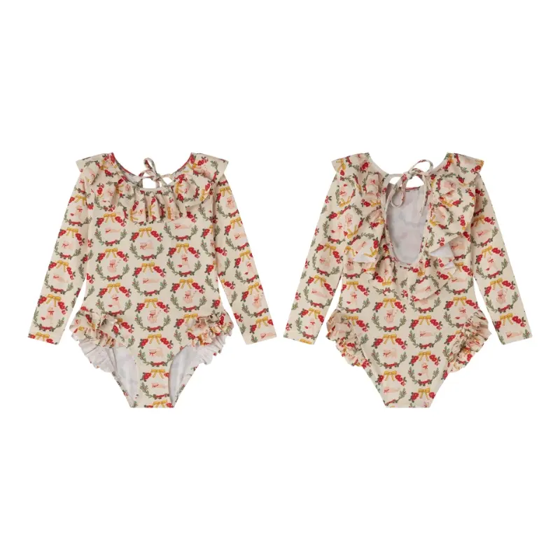 HomePRODUCTSGirl'S SwimwearCustom Kids Girl Floral Patterned One Piece Sun Protection Swimsuit