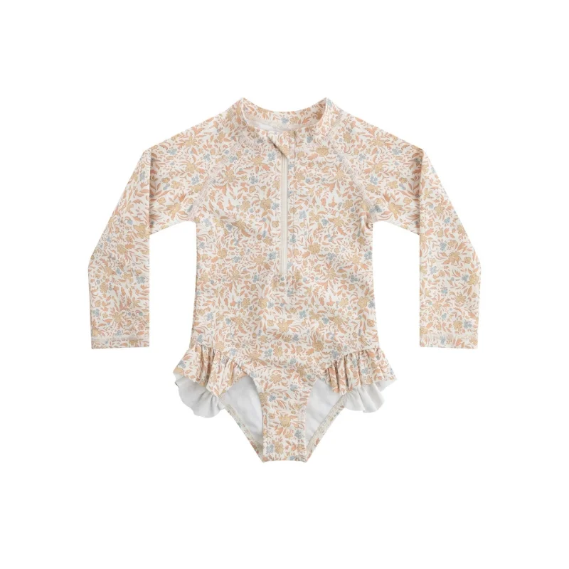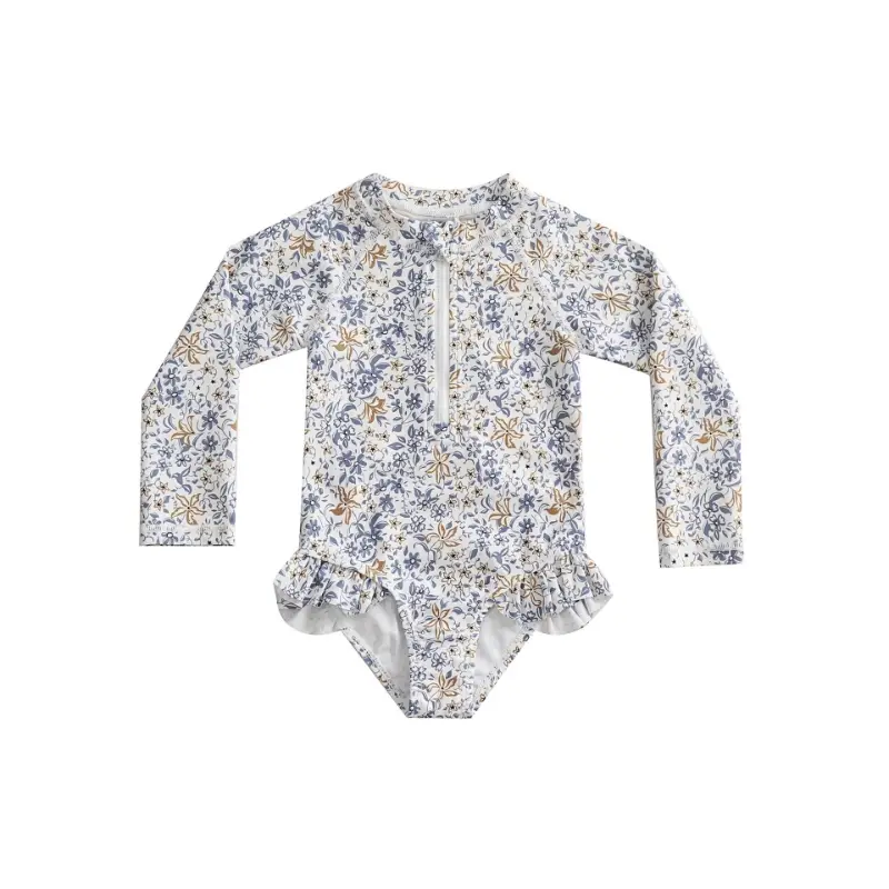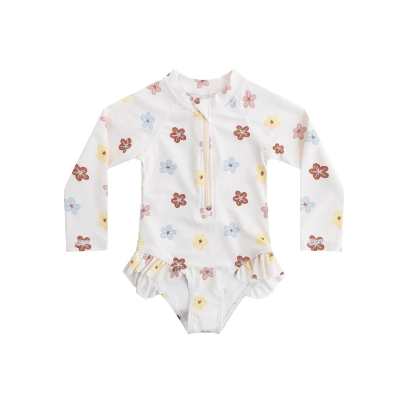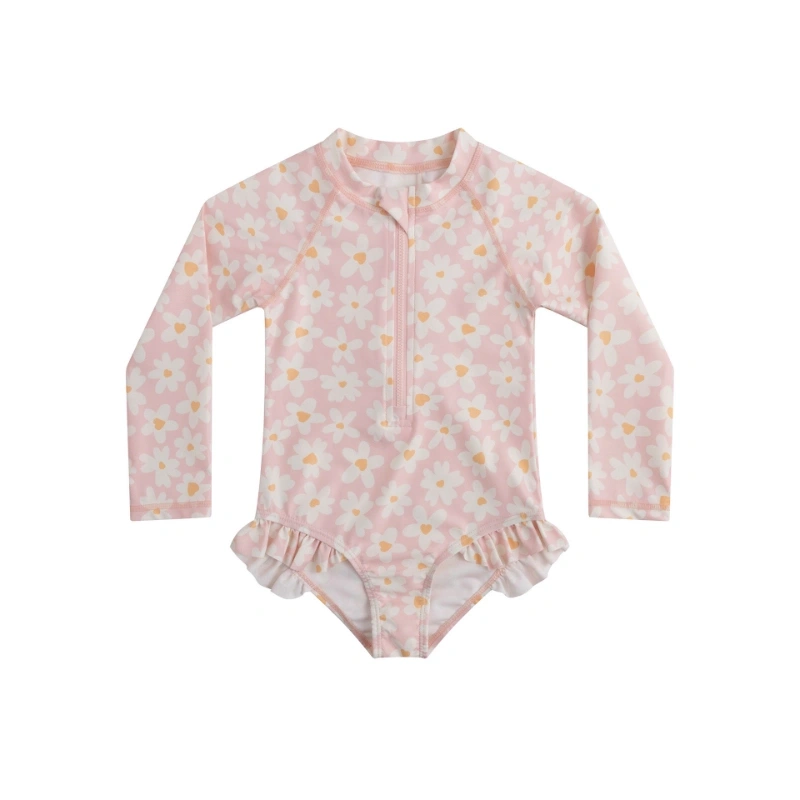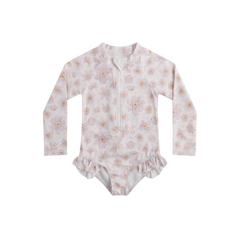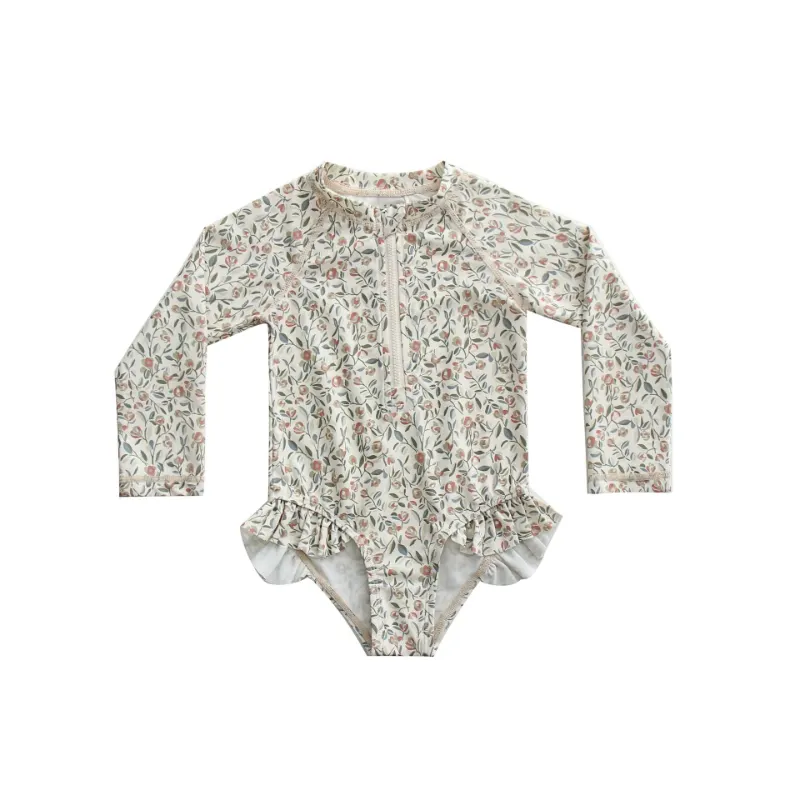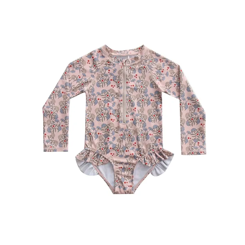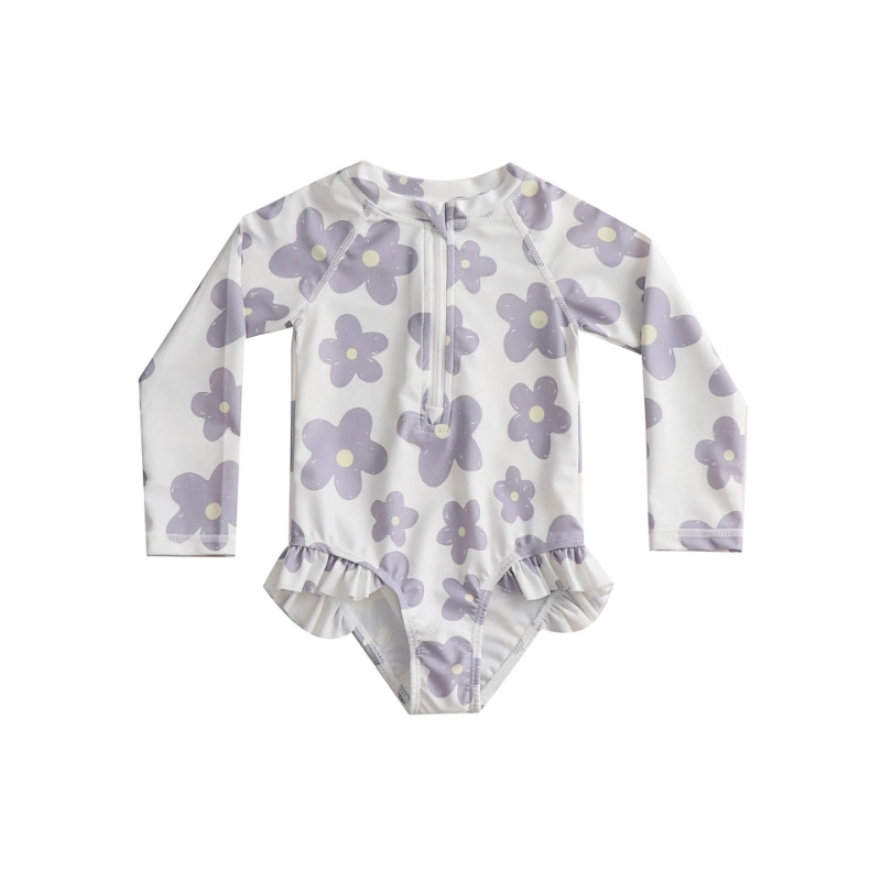 Long Sleeve Floral Cute One-Piece Girls Kids Beachwear Swimwear
