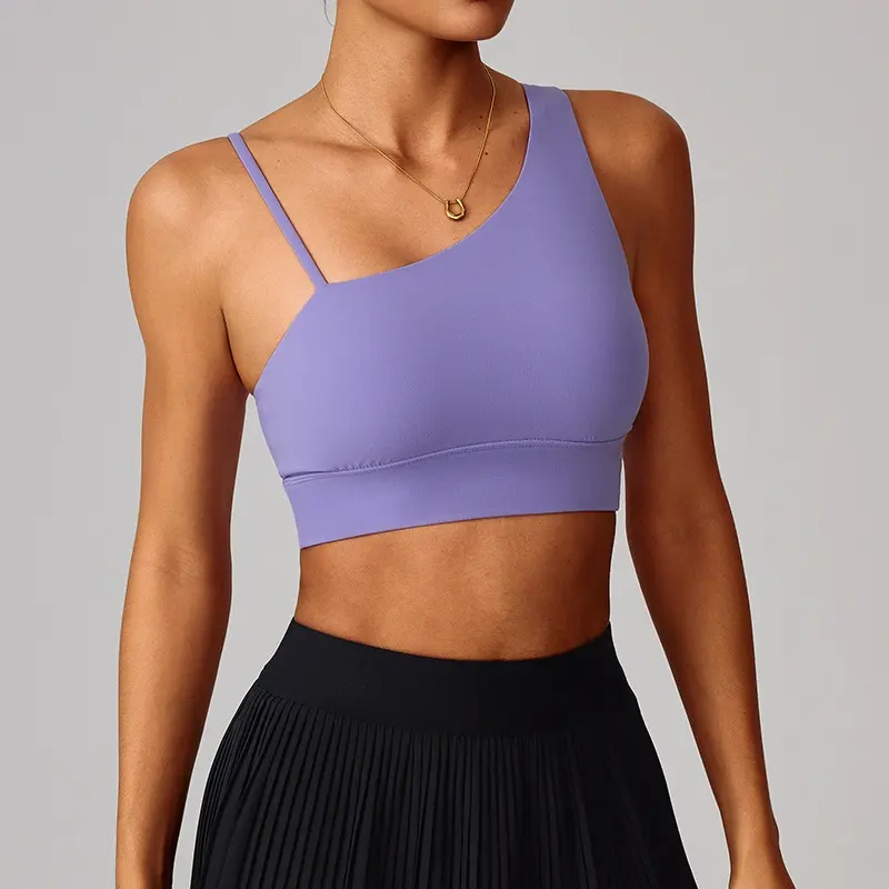 Oblique One Shoulder Quick Drying Stretchy Fitness Sports Bra