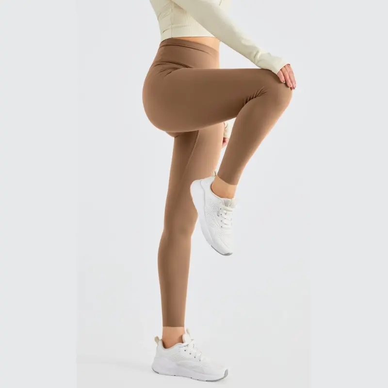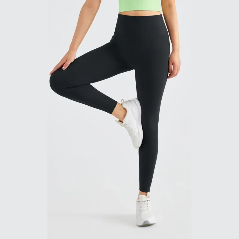 It features a high-waist design with strong elastic support. It stays in place well and does not roll down or slide down when you stretch, bend or do yoga poses.