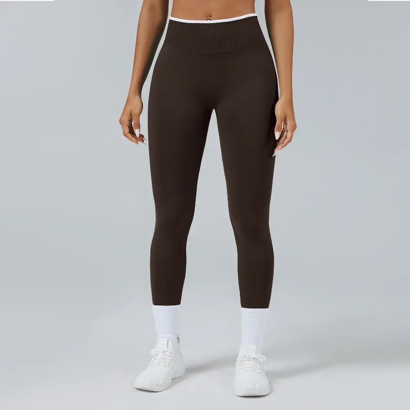 It features a high-waist design with strong elastic support. It stays in place well and does not roll down or slide down when you stretch, bend or do yoga poses.