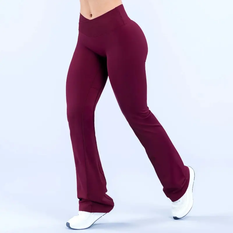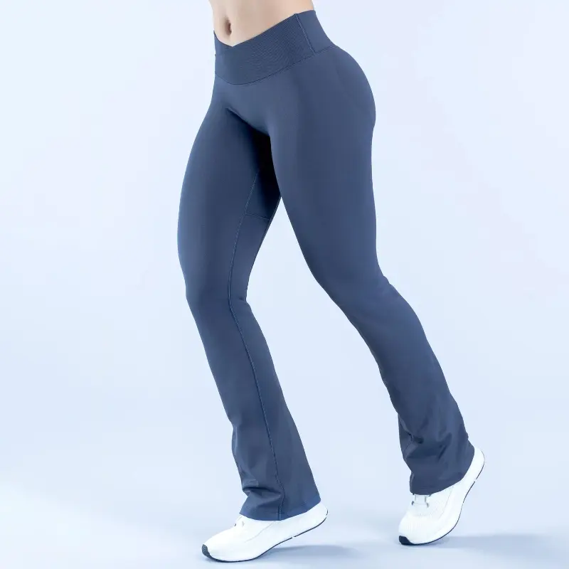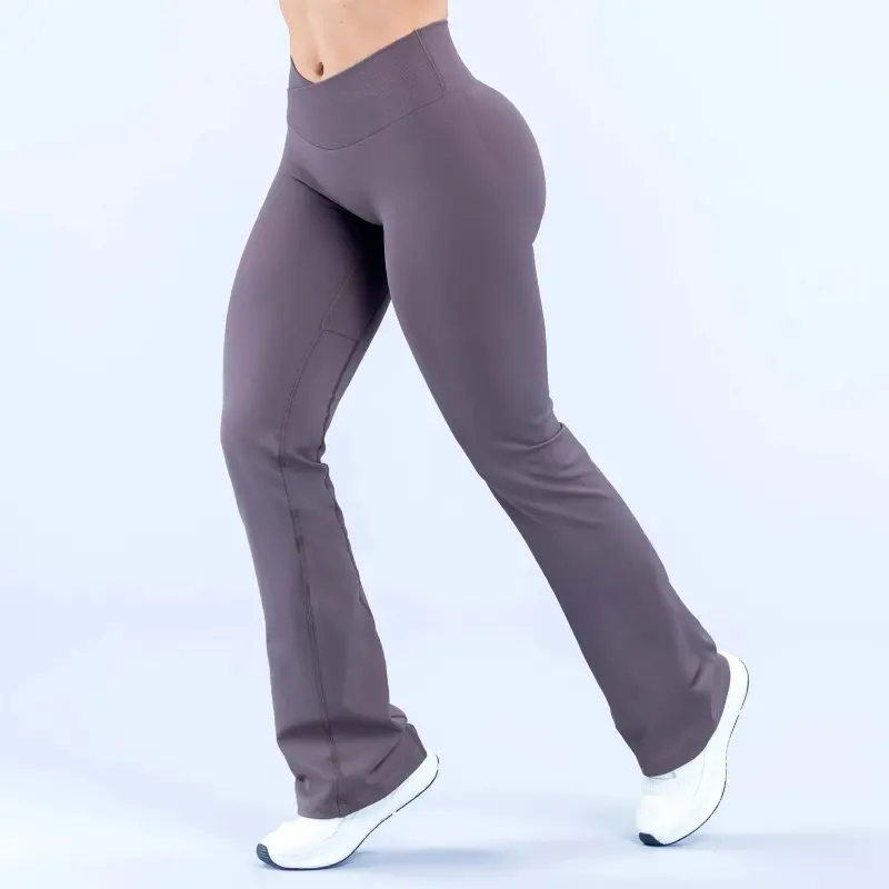 Ribbed V-Shaped Waistband High Waisted Seamless Yoga Flared Legging