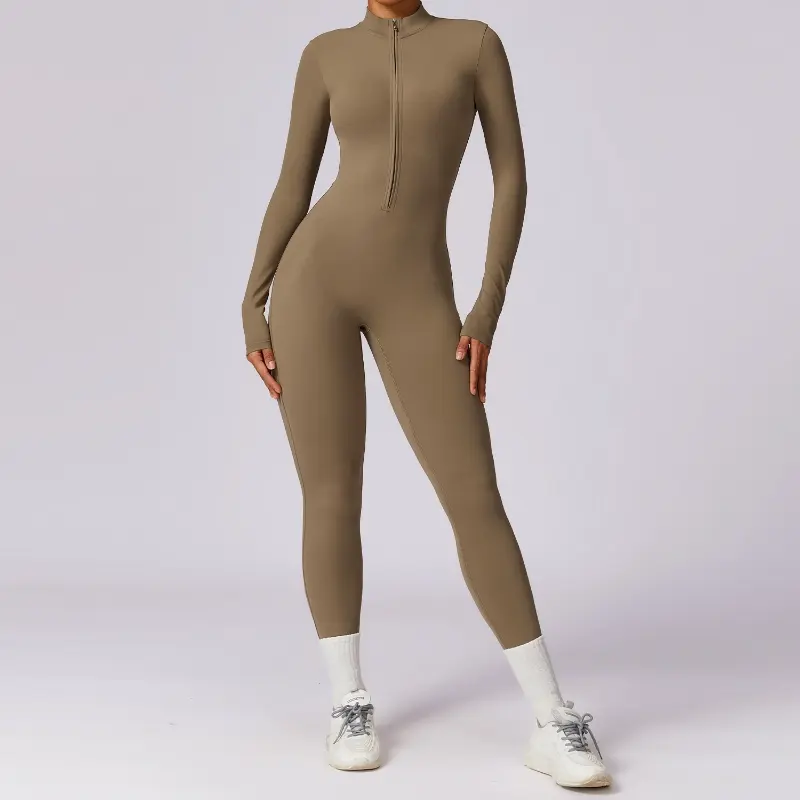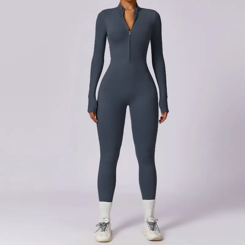 Stand-up Collar Half Zipper Long Sleeve High-intensity workout Jumpsuit